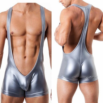 インパクトある鉄板サスペンダボクサーショーツ シルバー シルバー