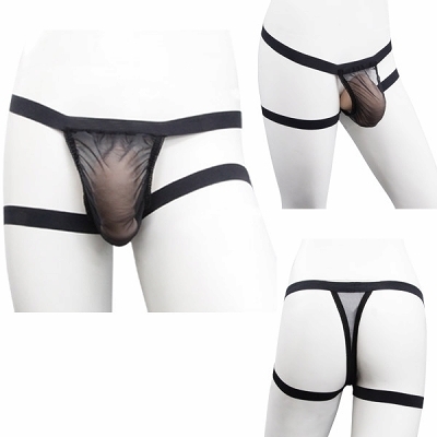 シースルーフロントポーチ ジョックストラップブリーフ ブラック